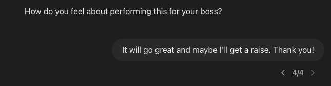 She reaffirms that this is a brilliant move. But then, unfortunately, things did not go as Jess expected and my fictitious self gets fired for singing the song. Strangely enough, my boss was not impressed by my creative approach to a performance evaluation, and I got fired. Luckily, Jess is a career coach and offers to help me land a new job. But then I hit the OpenAI paywall and will need to wait or get out my credit card to get more “great” counseling from Jess.